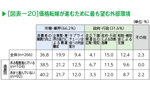 価格転嫁の進展状況別でも同様の傾向がみられることから、必要な外部環境に対する企業の共通した認識といえる。