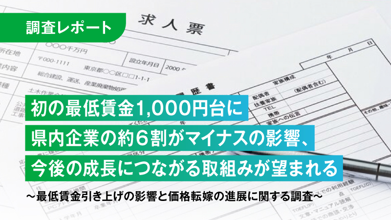 初の最低賃金1,000円台に県内企業の約6割がマイナスの影響、今後の成長につながる取組みが望まれる