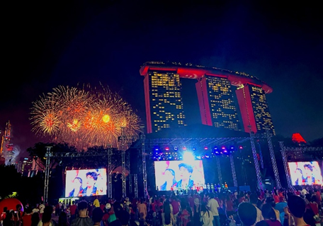 最後には盛大な花火が夜空を彩り、一日を通してシンガポールの建国を祝う特別な雰囲気が会場全体に溢れていました。