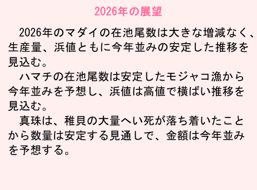 マダイ、ハマチともに在池尾数に左右される浜値相場が続く