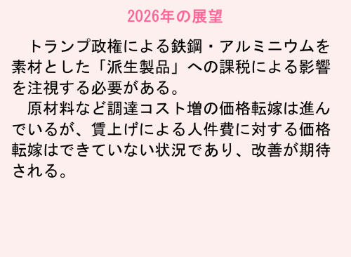 運搬荷役機械(クレーン)は、造船所向けのクレーンが好調で、2026年も引き続き受注環境は良さそうだ。