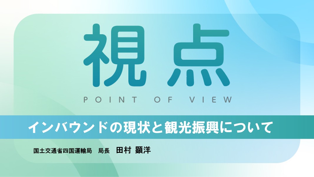 四国運輸局では、観光立国推進基本計画の基本的方針である「持続可能な観光地域づくり」、「インバウンド回復」、「国内交流拡大」に沿って、各地域が抱える課題に寄り添い、各種直轄事業や補助事業も活用しながら今後も支援してまいります。