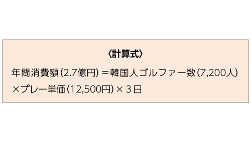 以上の仮定をもとにすると、直近1年間の韓国人インバウンド数に占めるゴルファーの割合は約6%(7,200人÷126,000人)と推計できる。