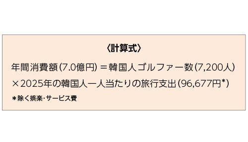 4.観光庁の消費動向調査やヒアリングをもとに、愛媛を訪れた韓国人ゴルファーは約7,200人、2025年の年間消費額は9.7億円と推計した。