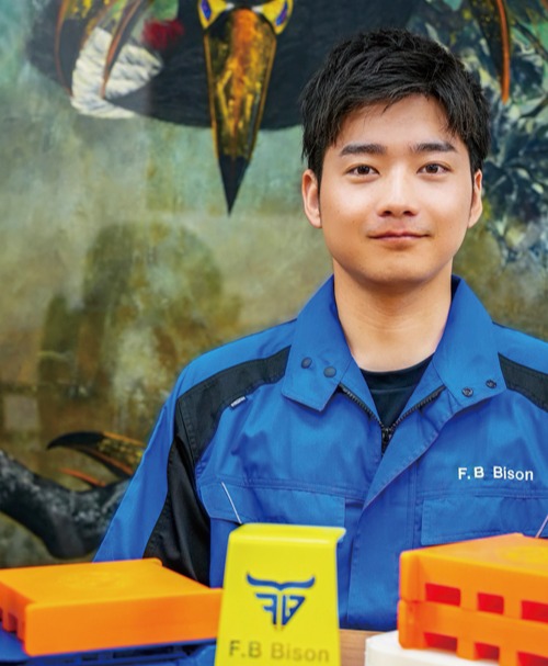 1963年、祖父の一氏が前職で車両整備をしていた経験を生かし、クローラ式運搬車*を製造したことを機に創業。同車は後に「バッファローシリーズ」として売り出され、社名にある「Bison(バイソン)」の由来となっている。なお、2024年に福本ボデーからF.B Bisonに社名変更した。