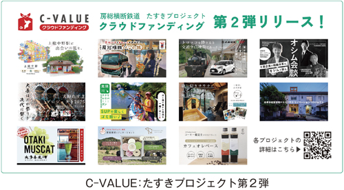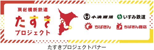 そんな沿線地域を盛り上げようと、両鉄道と千葉銀行グループがタッグを組んで、新たな地域おこしの取り組み「房総横断鉄道 たすきプロジェクト(以下たすきプロジェクト)」が始まった。両鉄道の沿線地域の事業者が、ちばぎん商店㈱の運営する購入型クラウドファンディング「C‒VALUE」を通じて新たな商品やサービスを提供し、地域の新しい魅力創出を図る。“たすき”には、前述の両鉄道の線路をつなぎ合わせると、房総半島をたすき掛けにしているように見えることに加え、新たな商品や事業の創出によって地域活性化に貢献する未来への“たすき”、参加企業同士のマッチングなど人と人との“たすき”といった意味が込められている。