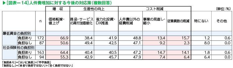 「負担あり」の企業では目先の原資確保とコスト削減を重視(図表-14)