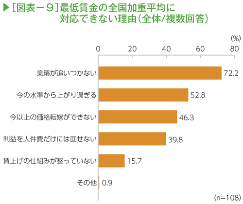 C. 全国加重平均目標に対応できない理由は「業績が追いつかない」