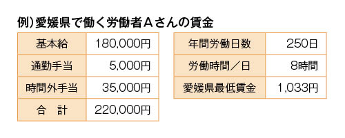 A. 愛媛県の最低賃金は、12月から1,033円になるようです。今年も上昇額が大きく、地元企業では悲鳴が上がっています。最低賃金の決定方法、最低賃金(時給)の計算方法などについてご紹介します。