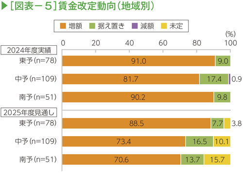 東予は9割近くが賃上げ予定に対し、中予と南予は約7割にとどまった(図表-5)。また南予は、「未定」が15.7%と比較的高くなっている。