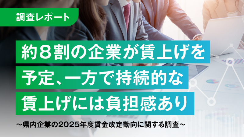 県内企業の賃金改定動向を把握するため、以下のアンケートを実施した。なお、アンケートはすべて正規雇用社員の賃金を対象に回答を得た。また、本調査では、平均月給の増額改定を「賃上げ」とする。