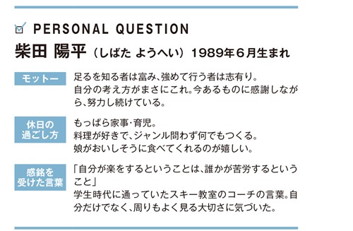 柴田氏は一見穏やかそうだが、実は負けず嫌い。小学生から始めたスキーでは国体選手となり、大学卒業後に勤めた金融機関では専門資格を多く取得した。「金融機関や、その後市役所で働いた経験が今に生きている」と、柴田氏。