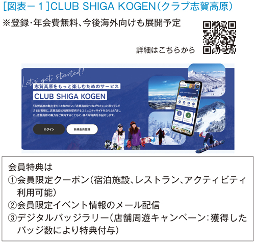また、宿泊予約を起点とした顧客情報の収集・利活用については、新たに立ち上げた会員制度「CLUB SHIGA KOGEN(図表−1)」(25年1月末時点の会員数7,774名)への誘導により蓄積した顧客データベースの分析を基に、会員のリピートに向けた効果的なキャンペーン施策が可能となった。