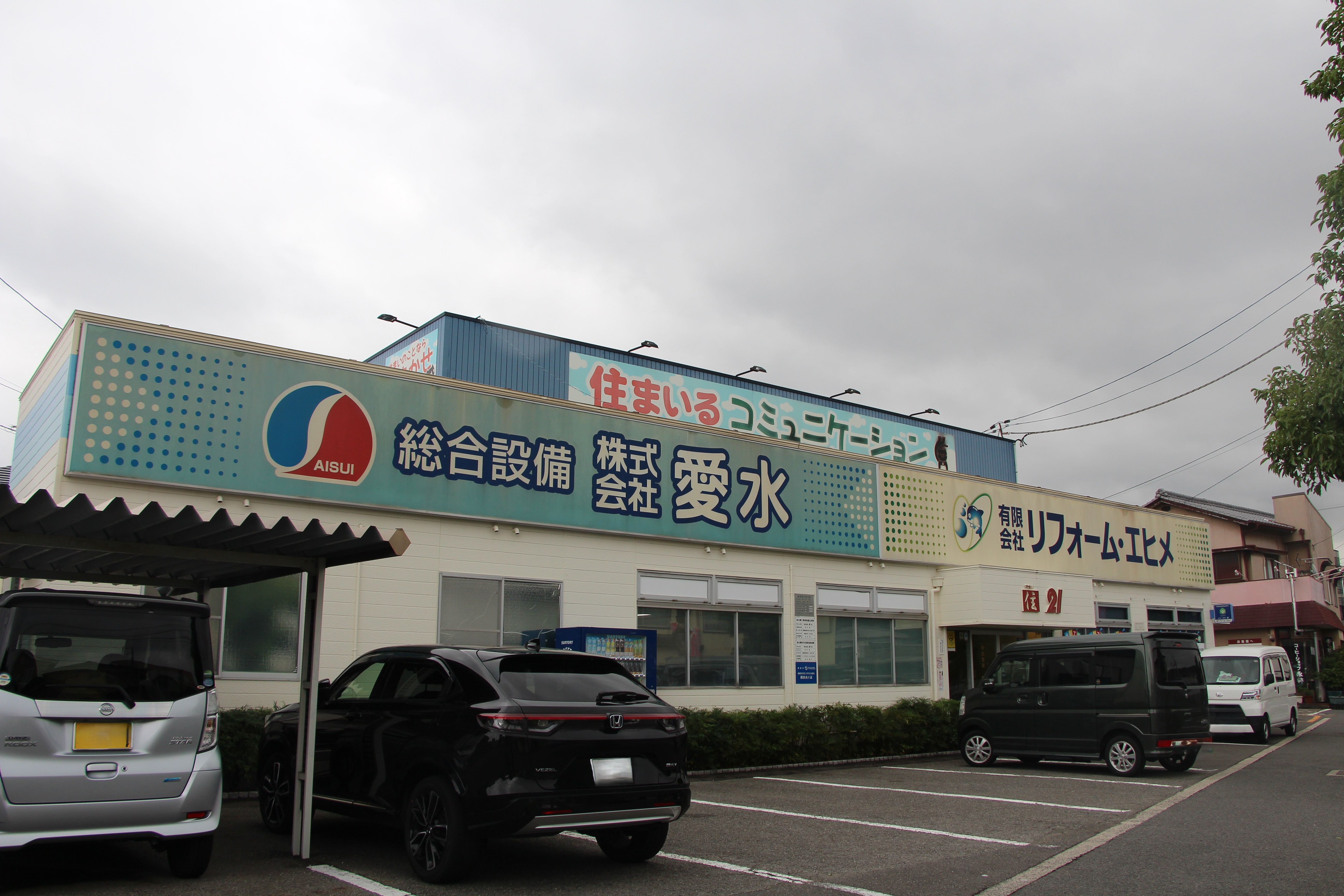 株式会社愛水は、台所や浴室といった水回り全般、その他空調設備や水道施設などの設備工事を行う会社である。1964年に『お風呂の専門店』として創業、89年に現在の社名に変更した。社名には「愛媛の水を守る」「水を愛する」という意味が込められている。